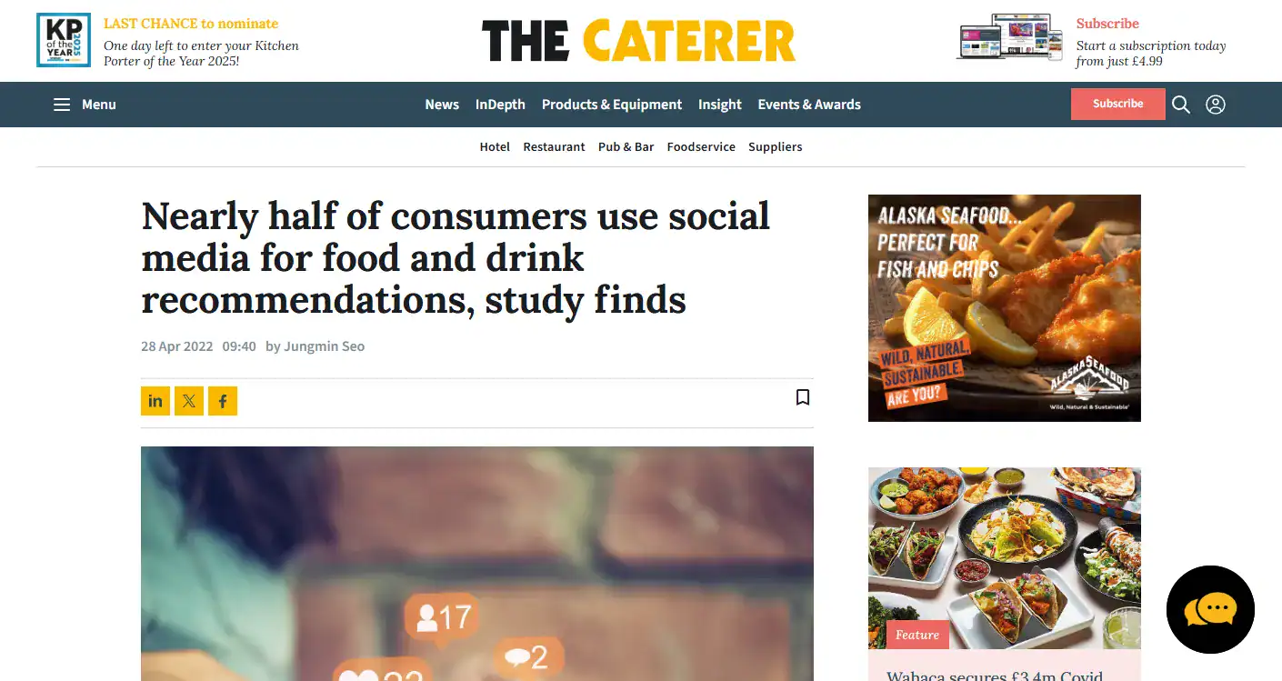 The Caterer – Tendances des réseaux sociaux dans l'hôtellerie-restauration